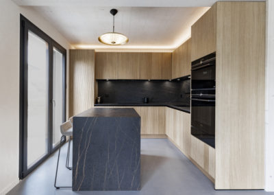 La disposition de la villa a été pensée pour offrir un espace de vie fonctionnel et agréable. Au rez-de-chaussée, vous trouverez un séjour lumineux, une cuisine moderne et un garage. A l’étage, nous avons disposé 2 chambres, une suite parentale ainsi qu’un espace salon-télé. Enfin, le sous-sol abrite une buanderie, une cave à vin et un grand espace polyvalent.